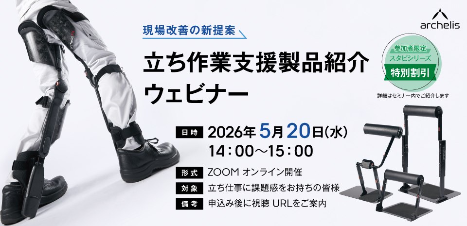 このたび、5月20日(水)に「JMC×アルケリス 共催 立ち作業支援製品紹介ウェビナー」をオンライン開催いたします。